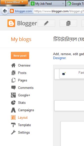 প্রথমে আপনার ব্লগ সাইটে লগ ইন করুন। এর পর লে-আউট এ ক্লিক করুন।
