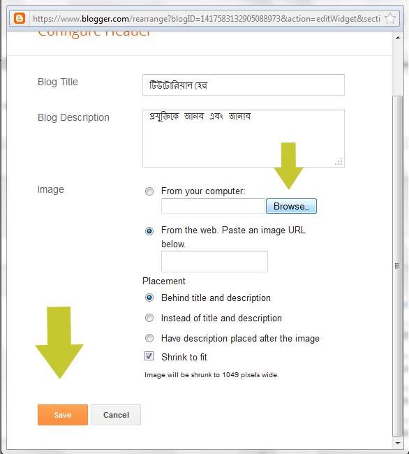 এবার আগে থেকেই ফটোশপে তৈরী করা 1024x150 সইজের ফাইলটি আপলোড করে দিন।