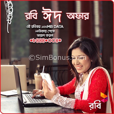 রবি গ্রাহকগণের জন্য ঈদ একটি বিশেষ দিন এবং এই দিনটিকে স্মরণীয় করে রাখার জন্য রবি দিচ্ছে বিশেষ ইন্টারনেট প্যাক। এই অফার নিলে হঠাৎ করে ঈদের সময় আপনার ইন্টারনেট এমবি শেষ হবার ভয় নেই! ---- রবির বিশেষ উক্তি!