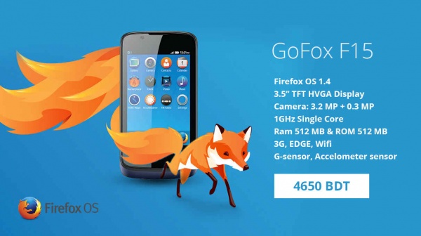 বাংলাদেশে ফায়ারফক্স ওএস সম্বলিত ফোন Symphony GoFox F15 টিতে রয়েছে ফায়ারফক্স এর ওএস ভার্সন Firefox OS 1.4।