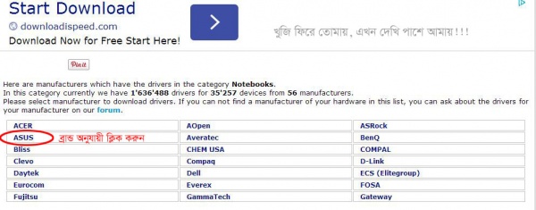 এবার আপনার ল্যাপটের এর ব্যান্ড অনুযায়ী নামে ক্লিক করুন,আমি ASUS এর ড্রাইভার নামাব তাই Asus এ ক্লিক করলাম।