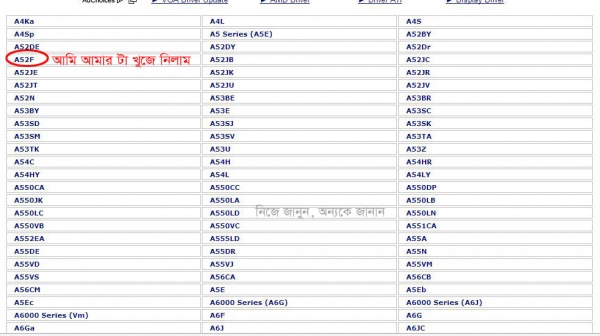 এখন আসুসের বিভিন্ন মডেল শো করবে আপনি আপনার মডেলটি খুঁজে ক্লিক করুন।