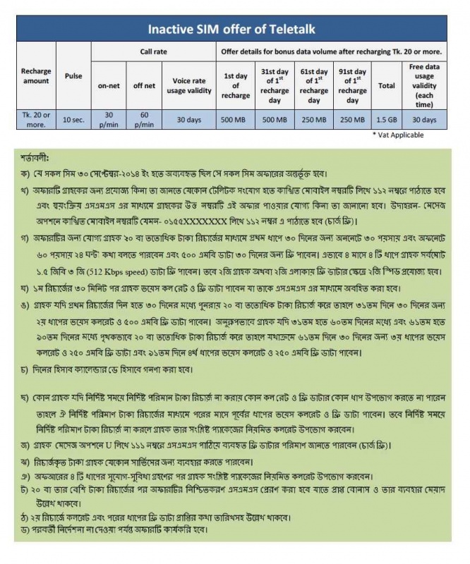 ২। অফার টি প্রযোজ্য হলে আপনাকে নুন্যতম ২০ টাকা রিচার্জ করতে হবে। ও ১২০ দিন ধরে অফারটি পেতে চাইলে আপনাকে প্রতি মাসে ৩০ তম দিনের মধ্যে ২০ টাকা করে রিচার্জ করতে হবে।