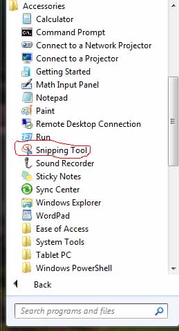উইন্ডোজ এ অনলাইন এ বিভিন্ন কাজ এর জন্য স্ক্রীন শর্ট নেয়ার দরকার পরে তার জন্য অনেকে অনেক সফটওয়্যার ব্যবহার করেন কিন্তু কখনো উইন্ডোজ এর Snipping Tool স্ক্রীনশর্ট সফটওয়্যার ব্যবহার করছেন । সফটওয়্যারটি জন্য Start মেনু থেকে Start>All Programs>Accessories যান ।দেখুন নিচের মত Snipping Tool সফটওয়্যারটি উইন্ডোজ এ আগে থেকেই ইন্সটল দেয়া আছে ।সফটওয়্যারটি খুজে না পেলে নিচের ছবিটি দেখুন ।