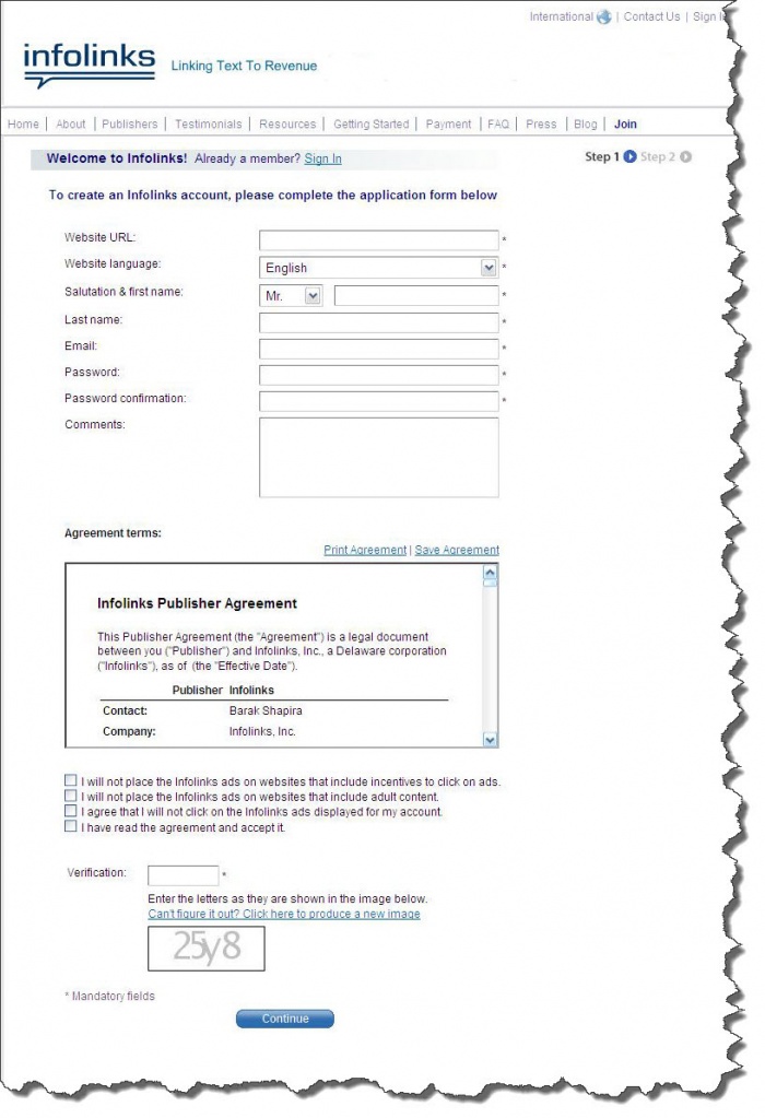 নিচে ধাপে ধাপে দেখানো হল কিভাবে আপনি ইনফুলিঙ্কস {www.infolinks.com} আয় করার জন্য সাইন আপ সহ অন্যান্য প্রক্রিয়া করবেনঃ