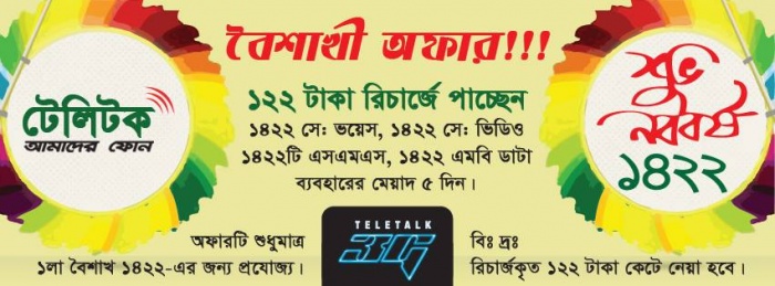 > অফারটি শুধুমাত্র ১লা বৈশাখ ১৪২২ (১৪ এপ্রিল ২০১৫) তারিখের জন্য প্রযোজ্য