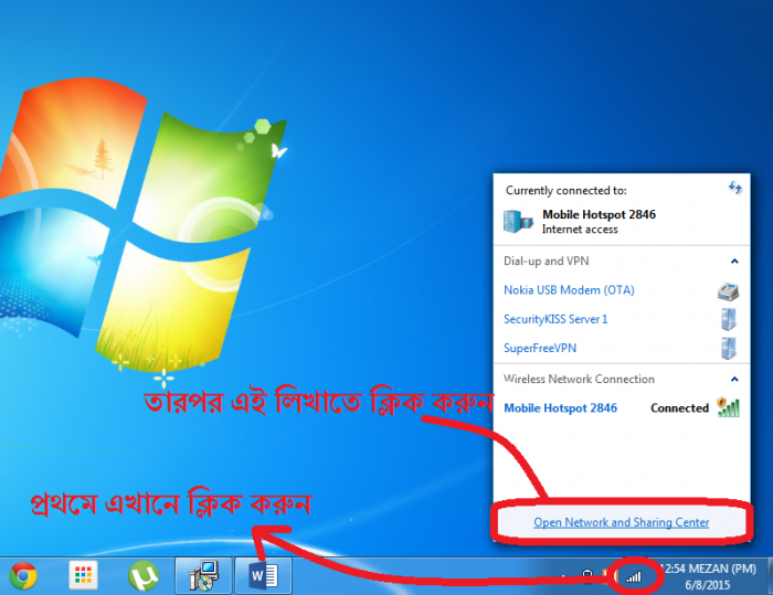 চলুন কাজ শুরু করি। প্রথমে Network And Sharing center এ ক্লিক করুন। নিচের মত: