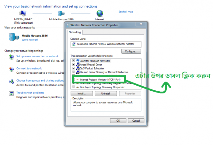 এখন নিচের মত দেখাবে। ছবির মত Internet protocol version 4 এ ডাবল ক্লিক করুন্::