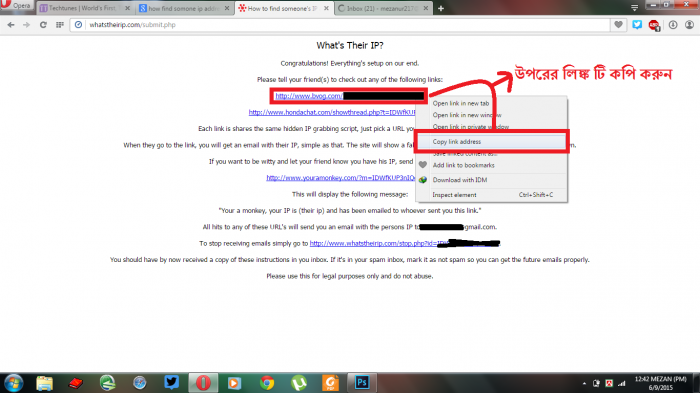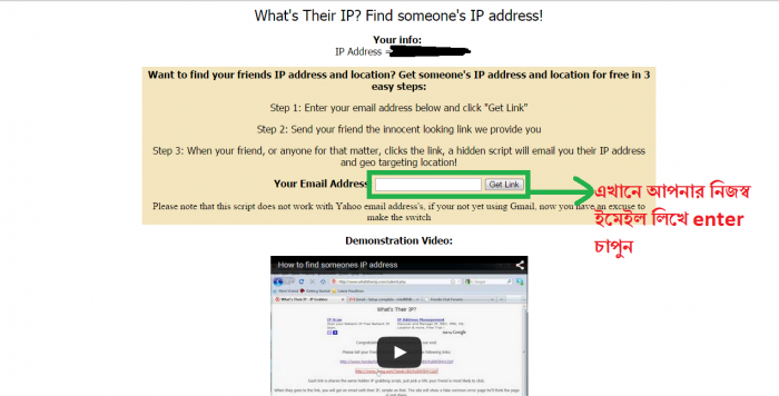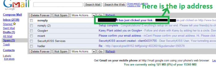 এবার আপনার কাঙ্কিত ব্যক্তি যদি এই লিঙ্ক এ ক্লিক করে তাহলে আপনার spam mail box এ একটি মেইল এর মাধ্যমে আপনাকে কাঙ্কিত ব্যক্তির আইপি পাঠানো হবে::