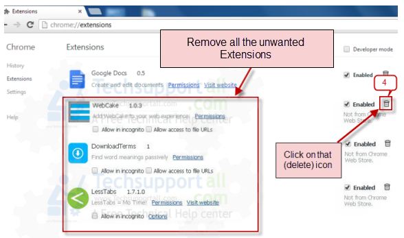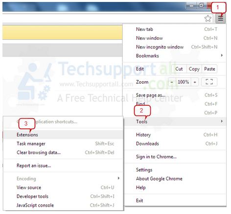 Google Chrome এর options icon (ব্রাউজারের উপরের ডান পাশে), Tools এর ভিতর Extensions। Extensions ক্লিক করলে নতুন একটা পেজ আসবে সেখান হতে সমস্ত অপরিচিত ও অপ্রয়োজনীয় ডিলিট করুন।