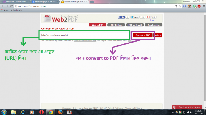 এবার আপনাকে নিচের মতো একটি খালি বক্স দেখাবে। খালি বক্স এ আপনি যেই ওয়েব পেজ টি সেভ করতে চান সেটির এড্রেস (URL) দিন। আমি techtunes এর URL দিলাম।