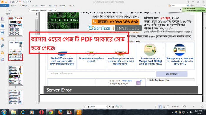 যেমন: আমার ওয়েব পেজ টি PDF আকারে সেভ হয়ে গেছে: