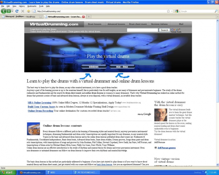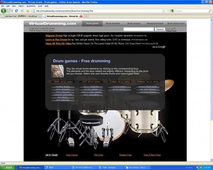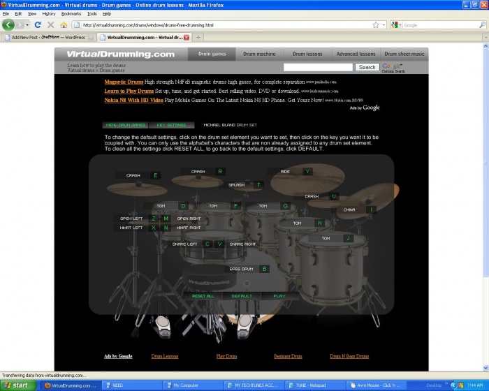 এতদিন অনলাইনে আমরা পিয়ানো বাজিয়েছি। আজ আমরা শুরু করব অনলাইনে কিভাবে ড্রাম বাজানো যায় এ পদ্ধতি নিয়ে!!!!!! কি মজার তাই না? প্রথমে এই সাইটে যান http://virtualdrumming.com/ দুটো OPTION পাবেন WINDOWS অথবা MAC-LINUX । যেকোন টাতে ক্লিক করুন । ড্রামের অনেক OPTION পাবেন। OPTION SELECT করে নিচের ডানদিকে PLAY ক্লিক করুন । তারপর KEYBOARD এর KEY দিয়ে ড্রাম বাজানো শুরু করে দিন