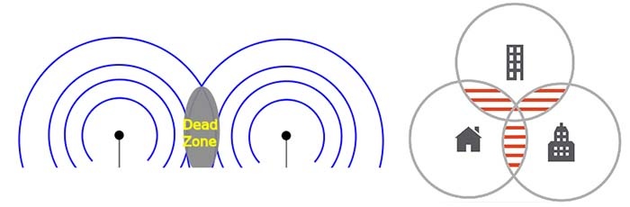 যেসব বস্তু বেতার তরঙ্গে বাধা সৃষ্টি করতে পারে সেগুলোর উপস্থিতিই মূলত ওয়াই-ফাই ডেড জোন তৈরী করে। কোন বিশাল আকৃতির বাড়ির একপ্রান্তে যদি একটি ওয়াই-ফাই রাউটার থাকে তাহলে তার অপরপ্রান্তে স্বাভাবিক ভাবেই Dead জোন তৈরী হবে যেখানে ওয়াই-ফাই নেটওয়ার্ক পৌছাতেই পারবে না। ওয়াই-ফাই নেটওয়ার্ক খুব বেশি পুরাতন কোন প্রযুক্তি নয়। শহর কিংবা গ্রামের অনেক বাড়ি ওয়াই-ফাই নেটওয়ার্ক প্রসারের আগেই তৈরী করা হয়েছে। তাই হয়তো সেগুলোকে ওয়্যারলেস নেটওয়ার্ক উপযোগি করে তৈরী করা হয়নি। ফলে সেগুলো ওয়াই-ফাই নেটওয়ার্ক সিগনালে বাধা সৃষ্টি করে। এছাড়া বাড়ির দেওয়ালে অনেক বেশি পুরু প্লাস্টার, মেটাল ওয়্যারিং, মেটাল ওয়াল ইত্যাদি ওয়্যারলেস নেটওয়ার্কে বাধা সৃষ্টি করে। ফলে পুরাতন আমলের বাড়ি কিংবা এই সমস্ত জিনিসের সমন্বয়ে তৈরী নতুন বাড়িতেও ওয়্যারলেস নেটওয়ার্ক এর সিগনাল পাওয়া যায় না।