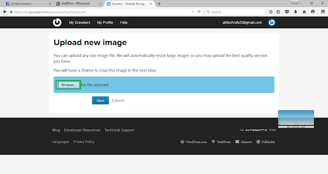 লগিন করার পর উপরে হাতের ডান পাশে ইমেইলের পাশে একটি ছবি আছে। সেখান থেকে "Add an Image" এ ক্লিক করুন।