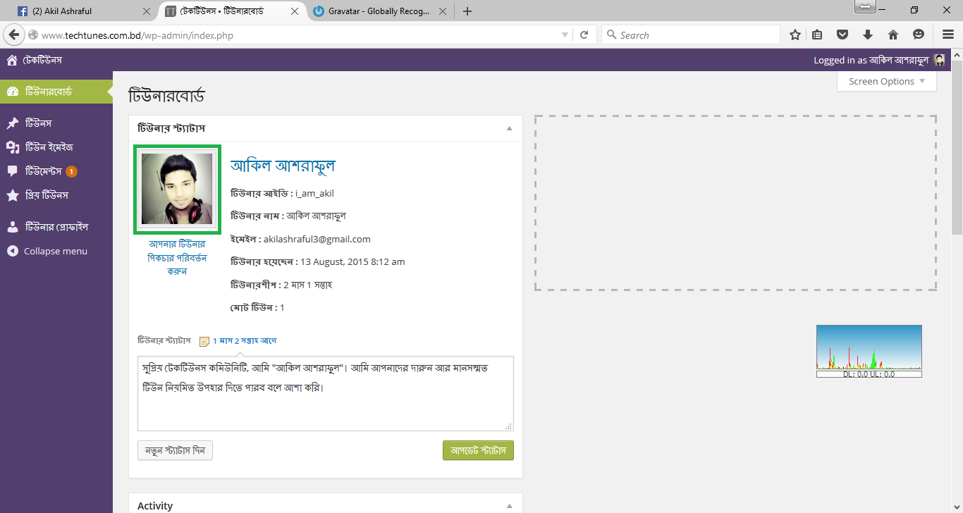 আমি আকিল আশরাফুল। বিশ্বের সর্ববৃহৎ বিজ্ঞান ও প্রযুক্তির সৌশল নেটওয়ার্ক - টেকটিউনস এ আমি 10 বছর 6 মাস যাবৎ যুক্ত আছি। টেকটিউনস আমি এ পর্যন্ত 11 টি টিউন ও 34 টি টিউমেন্ট করেছি। টেকটিউনসে আমার 0 ফলোয়ার আছে এবং আমি টেকটিউনসে 0 টিউনারকে ফলো করি।