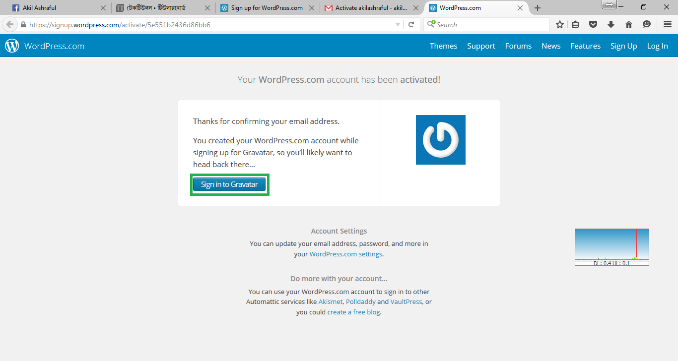 দেখবেন "Wordpress.com" থেকে আপনাকে একটি মেইল পাঠানো হয়েছে। এখন "Activate Account" এ ক্লিক করুন।