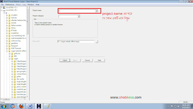 ৫. লাল দাক দেওয়া এই বক্সে আপনি যে সাইট টি সম্পূন Download করতে চান ঐ সাইটের নাম লেখুন এই ভাবে http://www.shobkeso.com এর পর Next বাটন এ কিল্ক করুন।