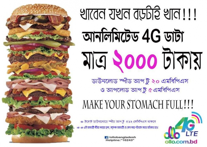 দেশের সবচেয়ে সুপার ফাস্ট ইন্টারনেট নিয়ে এলো ollo 4G LTE সুপারফাষ্ট ইন্টারনেট উনাদের সার্ভিস এখন বর্তমান ৪টি জেলায় বিশাল নেটওয়ার্ক নিয়ে বিস্তৃত। এই ইন্টারনেটে পাবেন 1 এমবি থেকে আপটু 20 এমবি।