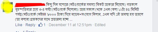 ২ দিন পর থেকে মোটামুটি ভালই স্পিড পাচ্ছিলাম কিন্তু ২ দিন চলার পর আবার শুরু হয়ে গেলো সমস্যা। কাস্টোমার কেয়ারে ফোন দিলে আপনার সমস্য কনসলট্যাট ডিপার্টমেন্ট এ পাঠিয়ে দিছি আপনার সাথে যোগাযোগ করা হবে। ওই দিন বিকালে আমার কাছে একজন ফোন দিল আপনার যে সমস্যা আমারা বুঝতে পেরেছি আপনিতো কভারেজ থেকে বাইরে সেই জন্য এই সমস্যা হচ্ছে তখন আমি বলরাম আমি যখন কভারেজ এর মধ্যে থাকি তখন ও একই সমস্যা আপনি পিসিটি রিস্টার্ট দিয়ে দেখেছেন ওলো ডিভাইসটি রিস্টার্ট দিয়ে চেক করেন আশাকরি ঠিক হয়ে যাবে। তারপর ঠিকতো হল না। এর পর আমি আবার ফোন দিলাম দিয়ে বললাম যশোরে যারা আছে তাদের একই সমস্যা আপনাদের ফেসবুক পেজ চেক করেন।