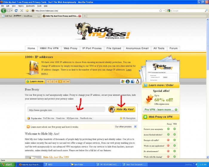ইন্টারনেটে মাঝে মাঝে বেশ কিছু ওয়েব সাইট আমরা BROWSE করতে পারিনা, যে সাইটগুলো আমাদের ভীষণ প্রয়োজন হয়। সাইটগুলো BROWSE করতে গেলেই CAN NOT FIND SERVER লেখাটি আসে।তখন খুব বিরক্ত লাগে। সাধারনত IP(INTERNET PROTOCOL) BLOCKED হয়ে গেলে এ পরিস্থিতির সৃষ্টি হয়। NO PROBLEM!!!!!!! এ সমস্যা সমাধানের জন্য আমার দেখা সেরা PROXY SITE http://www.hidemyass.com/ । যদিও ইন্টারনেটে অনেক অনেক PROXY SITE রয়েছে তবুও এটা সেরা মনে হয়েছে। যে সাইট OPEN হচ্ছে না তার WEB ADDRESS টা "HIDEMYASS" সাইটের মাঝে ADDRESS বার এ লিখুন।তারপর পাশে Hide My Ass ট্যাবে ক্লিক করুন (চিত্রতে আছে) । সাইট টি OPEN হবেই। এ সাইট টি USE করলে IP(INTERNET PROTOCOL) CHANGE করার বাড়তি ঝামেলা নেই।