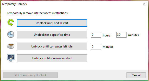 ০৫। Temporary unblock : এই অপশনটির মাধ্যমে একটি নির্দিষ্ট সময়ের জন্য ইন্টারনেট আনব্লক করতে পারবেন।