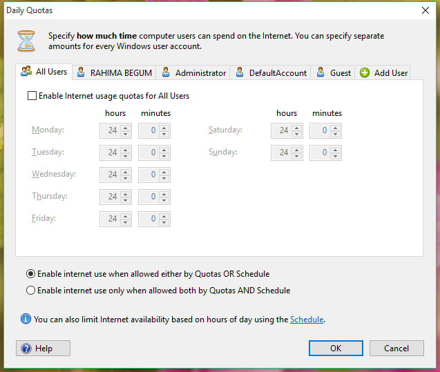০৭। Schedule: এই অপশনটির মাধ্যমে কোন দিন কোন সময় ইন্টারনেট ব্লক হবে তা সেট করতে পারবেন।