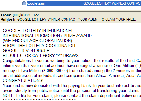 অস্বাভাবিক কিছু অফার করা – বেশিরভাগ স্প্যাম ইমেইল অস্বাভাবিক কিছু অফার করেই আসে। কেউ হয়তো আপনাকে বললো যে পেপসি এ বছর লটারির মাধ্যমে সৌভাগ্যবান ১০ জনকে ১ মিলিয়ন ডলার করে দিচ্ছে। আর সেই দশজনের মধ্যে আপনিও একজন।