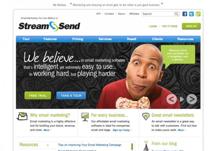 5. StreamSend : প্রথম মাসে এরা ২০০ ইমেল ফ্রি সেন্ড করতে দেয়। এদের প্রিমিয়াম সার্ভিসের মধ্যে রয়েছে ২০ ডলারে ৫০ হাজার ইমেল সেন্ড করার সুযোগ। ইমেল মার্কেটিং করার সকল আপডেট ফিচার ও সার্ভিস এই প্লাটফরম থেকে ব্যবহার করতে পারেন। ইমেইলে সহজে ভিডিও এড করা ইত্যাদি পাওয়ারফুল ও এডভান্স সার্ভিস এদের রয়েছে।
