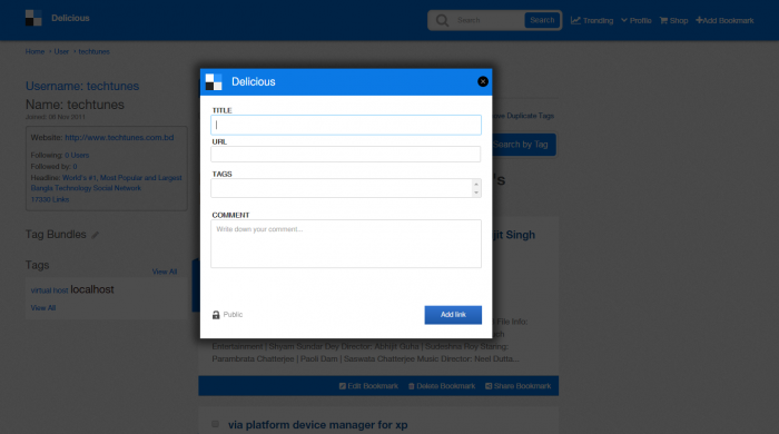 লক্ষ্য করুন, টাইটেলের ঘরে এই বুকমার্কের জন্য একটি শিরোনাম নির্ধারণ করে দিতে হবে। ইউআরএল এর ঘরে আপনার কাঙ্ক্ষিত ঠিকানাটি বসবে। ট্যাগস এর ঘরে সামঞ্জস্যপূর্ণ বা relevant tags ব্যবহার করুন। সবশেষে Comments এর ঘরে আপনি যেই লিংকটি শেয়ার করছেন বা বুকমার্ক করছেন, সেই লিংক সম্বন্ধে সংক্ষেপে কিছু লিখে রাখতে পারেন।