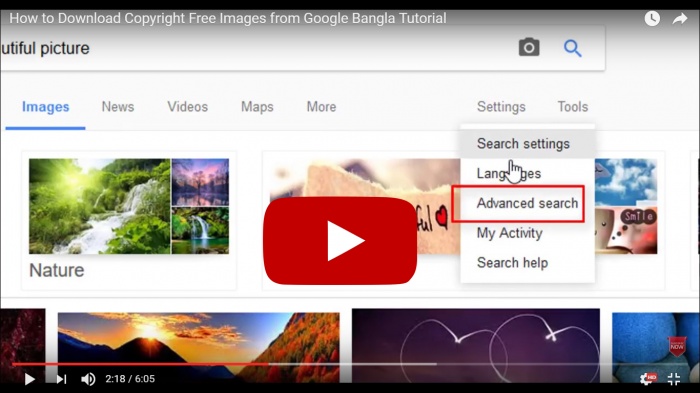 advanced search যাবার পর আমরা নিচের দিকে Usages Right এই অপশন টা পাবো এখান ধিকে একেবারে নিচের অপশন Free To use,share or modify,even commercially এটা ক্লিক করে সিলেক্ট করে Advanced search Click দিলে এরপর যে ইমেজ আসবে সে সকল ইমেজ copyright free . এই ইমেজ ব্যবহার করলে আমাদের কোন সমস্যা হবে না। যদি টিউন বুঝতে সমস্যা হয় উপরের ভিডিও follow করেন আশা করি সব বুঝবেন।