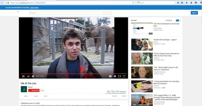 জনপ্রিয় ভিডিও শেয়ারিং ওয়েবসাইট ইউটিউবের সর্বপ্রথম ভিডিও কোনটি সেটি জানেন কি? সাইট নির্মাণের পর ২০০৫ সালের ২৩ এপ্রিল "Me at the zoo" শিরোনামে একটি ১৮ সেকেন্ডের ভিডিও আপলোড করা হয়। এবং এই ভিডিওটিই হচ্ছে ইউটিউবের সর্বপ্রথম ভিডিও! এই ভিডিওটি স্যান ডিয়াগোর চিড়িয়াখানায় হাতিদের সামনে থেকে শুট করা হয়েছিল। ভিডিওটি হাস্যকর হলেও এই টিউনটি লেখা পর্যন্ত ভিডিওটি ৪০, ৭৪, ৩৭২৪ বার দেখা হয়েছে! কি আজব তাই না?
