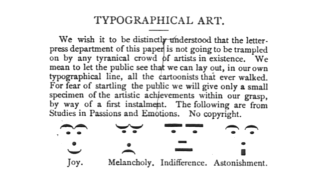 তখন এইসব বুলেটিন বোর্ডে মজা করার উদ্দেশ্যে সরাসরি কোনো অক্ষর না লিখে পাঙ্কচুয়েশন মার্কের ব্যবহার করা শুরু হয়। তখন ১৯৮২ সালের একসময় প্রফেসর স্কট : -) এই তিনটি অক্ষরকে একত্রে ব্যবহার করে 🙂 স্মাইলির ব্যবহারের প্রচলন শুরু করেন। পরবর্তীতে দুনিয়ার সর্বত্র স্মাইলি ব্যবহারের প্রচলন শুরু হয়ে যায়।