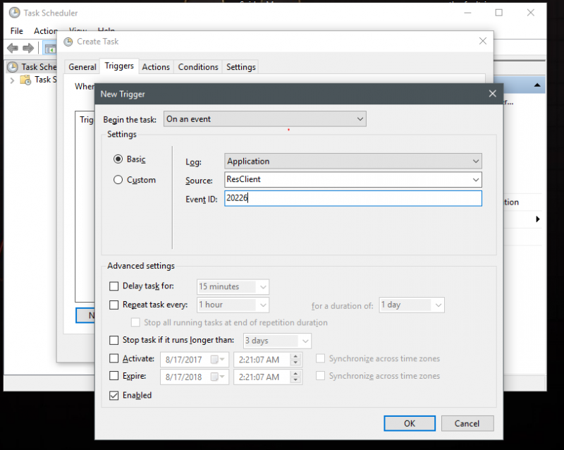 এবার মেনুবার থেকে “Action” নামের অপশনটি তে ক্লিক করে সেখান থেকে “Create Task” এ ক্লিক করুন। তারপরে সেখান থেকে “Trigger” ট্যাবে গিয়ে “New” বাটনে ক্লিক করুন। এবার নিচের মত সেটি সেটিং করে নিন। এবার “Ok” বাটনে ক্লিক করুন।