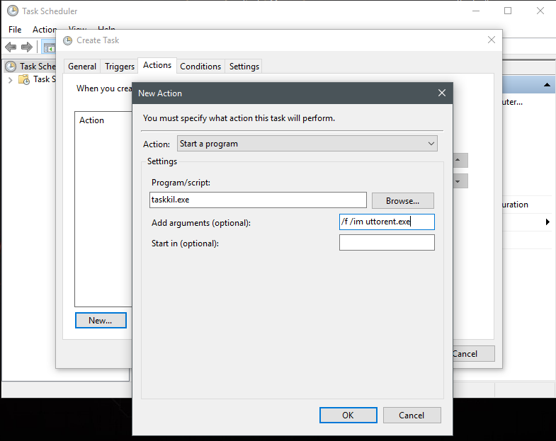 এবার “Actions” ট্যাবে ক্লিক করুন। সেখান থেকে “New” বাটনে ক্লিক করুন। নিচের মত করে সেটিং করে নিন। এবং “Add arguments” বক্সে আপনি যেই সফটওয়্যারে কাজ করতে চান তার নাম দিবেন। তাহলেই কাজ শেষ।