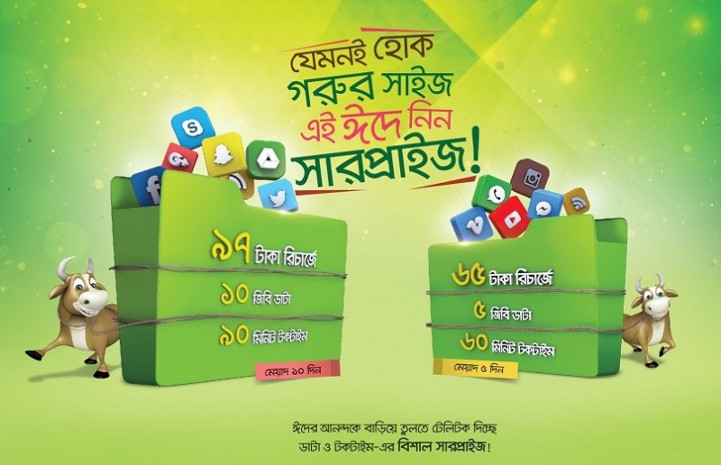 ৪)অফারটি চালু করার পর গ্রাহক ৬৫ টাকার জন্য পাবেন ৬০ মিনিট টকটাইম (৪০ মিনিট অন-নেট, ২০ মিনিট অফ-নেট) এবং ৫ জিবি ডাটা আর ৯৭ টাকার জন্য পাবেন ৯০ মিনিট টকটাইম (৬০ মিনিট অন-নেট এবং ৩০ মিনিট অফ-নেট) এবং ১০ জিবি ডাটা।
