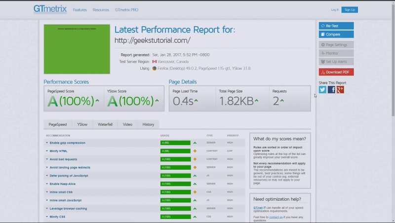 gtmetrix.com: আপনি যদি ওয়েব ডেভেলপার কিংবা কোনো ওয়েবসাইটের মালিক হয়ে থাকেন তাহলে অবশ্যই এই ওয়েবসাইটি আপনার কাজে দেবে, এখানে এসে আপনি যেকোনো ওয়েবসাইটের লোডিং টাইমের পরীক্ষা করে নিতে পারবেন। এছাড়াও কোনো সাইট স্লো হয়ে সেটির কারণও আপনি এই সাইট থেকে জানতে পারবেন।