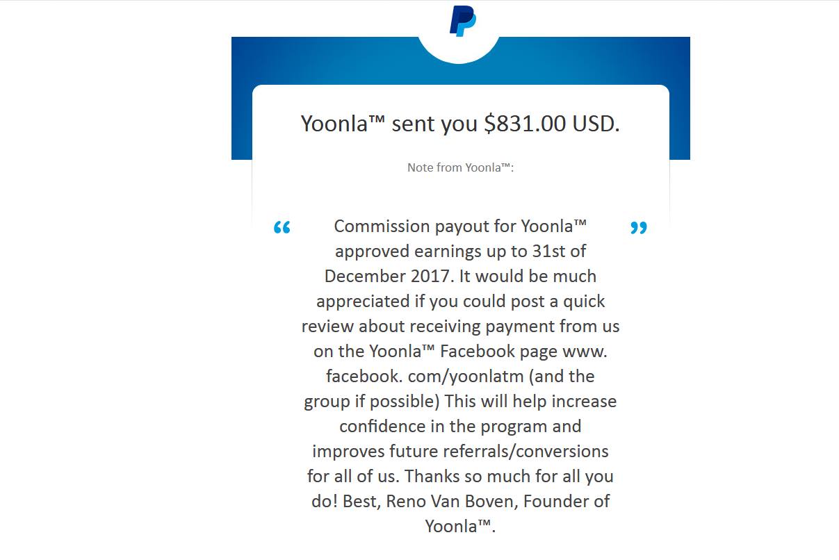 Yoonla তে মুলত সাইন আপ অথবা একাউন্ট করানোর অফার আছে। আর একজন আপনার Affiliet link দিয়ে যদি বাংলাদেশ থেকে কেউ সাইন আপ করে তাহলে 2$ কমিশন আর USA এর দেশ থেকে সাইনআপ করলে 4$। আপনি এই ডলার Payza or paypal দিয়ে ওাতে পারবেন।