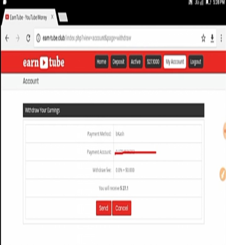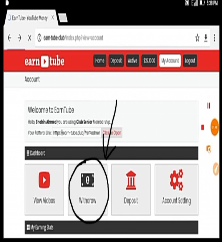 উইথড্র করার পদ্বতিঃ→প্রথমে আপনার earn-tube একাউন্ট এ গিয়ে উইথড্র বাটনে ক্লিক করুন।