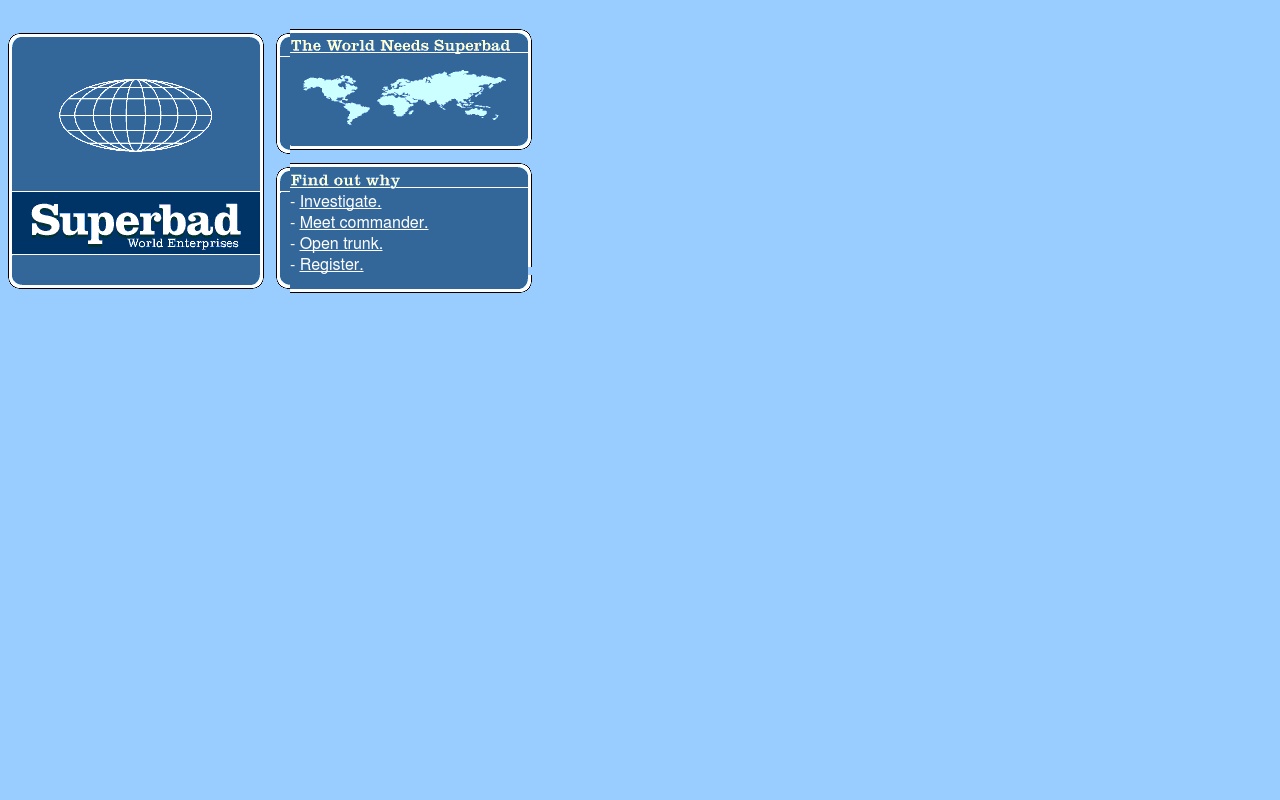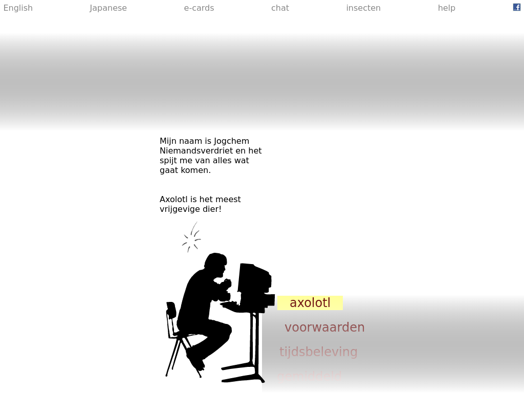 যখন এই সাইটটি পরিদর্শন করা হয়, তখন একজন লোককে একটি কম্পিউটারে কাজ করতে দেখা যায় এবং একটি অ্যানিমেশনের সঙ্গে একটি শব্দ তালিকা প্রদর্শিত হবে। যে তালিকা stoppable না। কোনও শব্দে কার্সার রাখলে এইচটিএমএল ট্যাগের মত কিছু কোড টাইপ করা হয় এবং যখন সেই শব্দটি ক্লিক করা হয়, তখন এটি একটি অদ্ভুত পৃষ্ঠা দেখায়।
