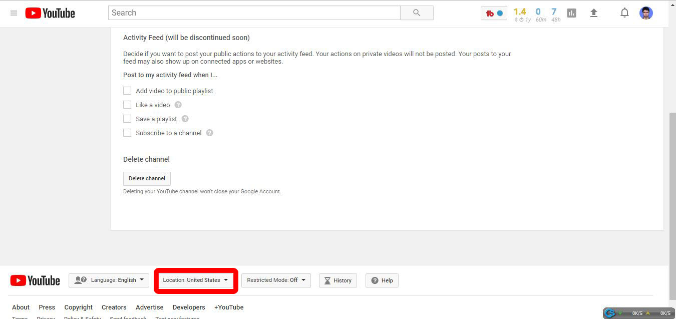 যাহোক, দেশ পরিবর্তনের জন্য ইউটিউব.কম এ প্রবেশের পর স্ক্রল(বাম দিকের স্ক্রল বার)করে নিচের দিকে আসলে Settings