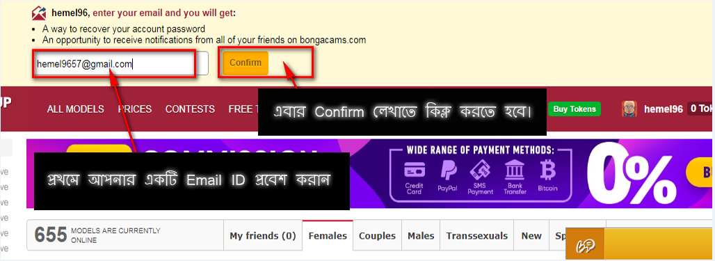 এবার উপরে ঘরে আপনার Email Address টাইপ করুন এবং Confirm লেখাতে কিক্ল করুন।
