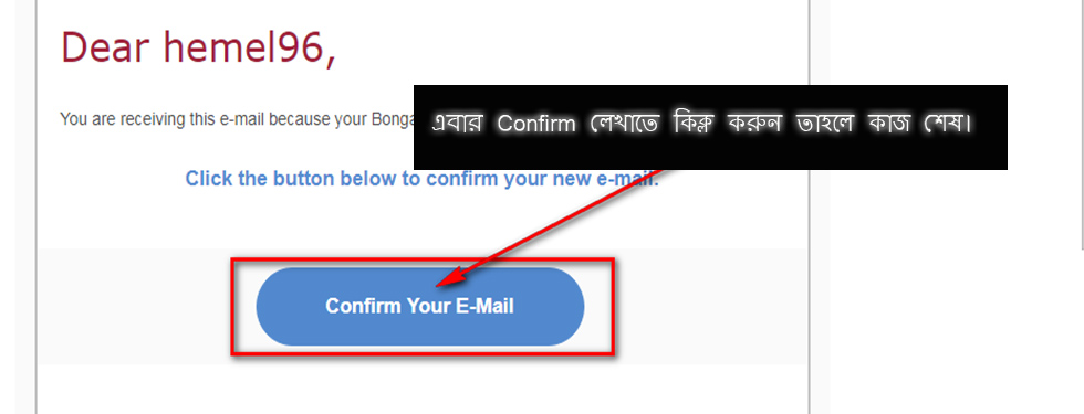 মেইলটি ওপেন করার পর নিচের মত Confirm Your E-Mail লেখাতে কিক্ল করুন।