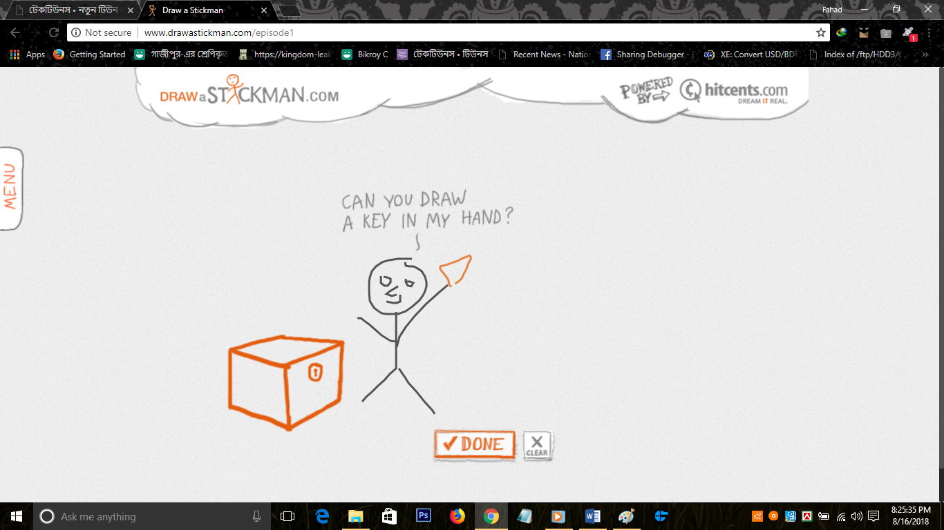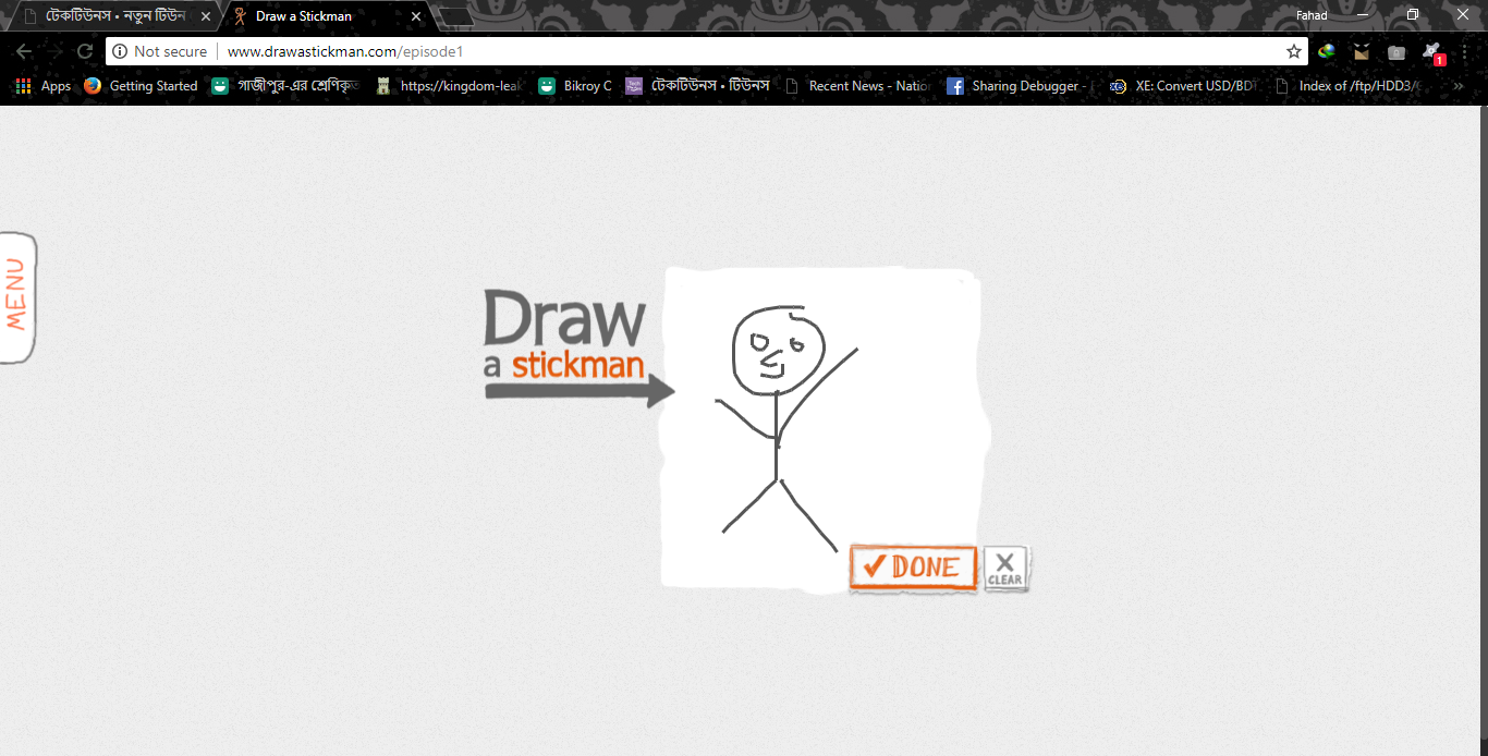 এটা একটি বেশ ইন্টারেটিং ওয়েবসাইট। এখানে আপনি নিজে একটি stickman এঁকে নিয়ে তার উপর ওয়েসাইটির তৈরিকৃত বিভিন্ন এডভেঞ্চারে যেতে পারবেন (মানে খেলতে পারবেন আরকি)। প্রথম ২টি পর্ব ফ্রিতে হলেও পরের পর্বটি উপভোগ করতে হলে আপনাকে পয়সা খরচ করতে হবে। ক্রিয়েটিভ ভাবে টাইমপাস করার জন্য এটি একটি দারুণ ওয়েবসাইট। ওয়েবসাইটটির লিংক: http://www.drawastickman.com/