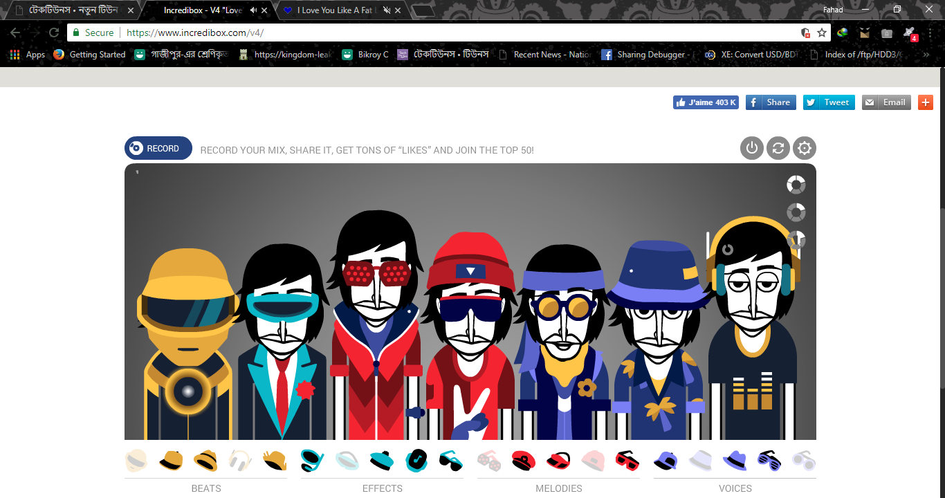 মিউজিক ভালোবাসেন? তাহলে মিউজিক নিয়ে এই মজার ওয়েবসাইটটি আপনার বেশ ভালো লাগবে! Incredibox হচ্ছে একটি মিউজিক ওয়েবসাইট যেখানে আপনি এনিমেশন কার্টুনের বিটবক্সারের সাহায্যে নিজস্ব মিউজিক তৈরি করতে পারবেন। ২০০৯ সালে নির্মিত এই ওয়েবসাইটে বর্তমানে ৪৫ মিলিয়ন ইউজার রয়েছেন। সরাসরি নিজে ট্রাই করে দেখুন। ট্রাই করতে চলে যান https://www.incredibox.com/ লিংকে। হোম পেজে গিয়ে আপনার পছন্দসই বিটবক্সারকে সিলেক্ট করুন। তারপর নিচের বক্সের আইকনগুলোর থেকে আপনার পছন্দমতো আইকনকে বিটবক্সারের ক্যারেক্টারের উপর ছেড়ে দিলেই নিজস্ব বিটবক্স মিউজিক আপনি তৈরি করতে পারবেন!