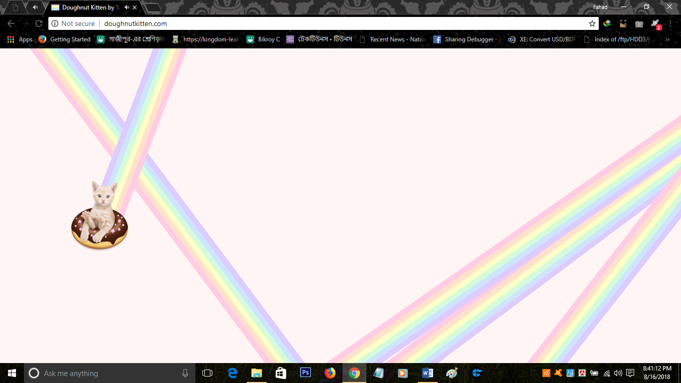 এটাও আরেকটি “ননসেন্স” সাইট। সাইটে গেলে দেখতে পারবেন যে একটি ডোনাটের উপর একটি বিড়াল বসে আছে এবং বিড়ালসহ ডোনাটি রংধনুর উপরে ভাসছে! এবার বিড়ালটির উপর মাউস ক্লিক করলে দেখবেন যে বিড়ালটি পরিবর্তিত হয়ে যাচ্ছে! আপনারাই বলেন এটা আসলেই ননসেন্স কিনা! সাইটটির লিংক: http://doughnutkitten.com/