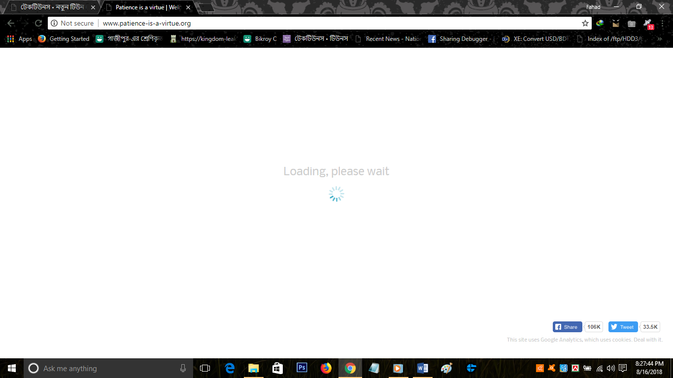 পুরাই লুল মার্কা এই ওয়েবসাইটের আলাদা কোনো বিশেষ গুণ নেই। এই ওয়েবসাইটে গেলে আপনি শুধু দেখবেন যে স্ক্রিণে Loading please wait. নামের কথা ভেসে রয়েছে। তবে এই উদ্ভট ওয়েবসাইটেও আপনি উদ্ভট ভাবে কাজে লাগাতে পারেন, যেমন আপনার কোনো বন্ধুর ব্রাউজারে এই ওয়েবসাইটকে হোমপেজ হিসেবে সেট করে দিন। সে যদি একটু বোকা প্রকৃতির হয় তাহলে পরবর্তী সময় সে যখন তার পিসির ব্রাউজারচালু করবে এবং এই সাইটি হোমপেজ হিসেবে চালু হবে তখন সে ভাববে সে তার ইন্টারনেটের গতি অনেক স্লো হয়ে গিয়েছে! সাইটটির লিংক: http://www.patience-is-a-virtue.org/