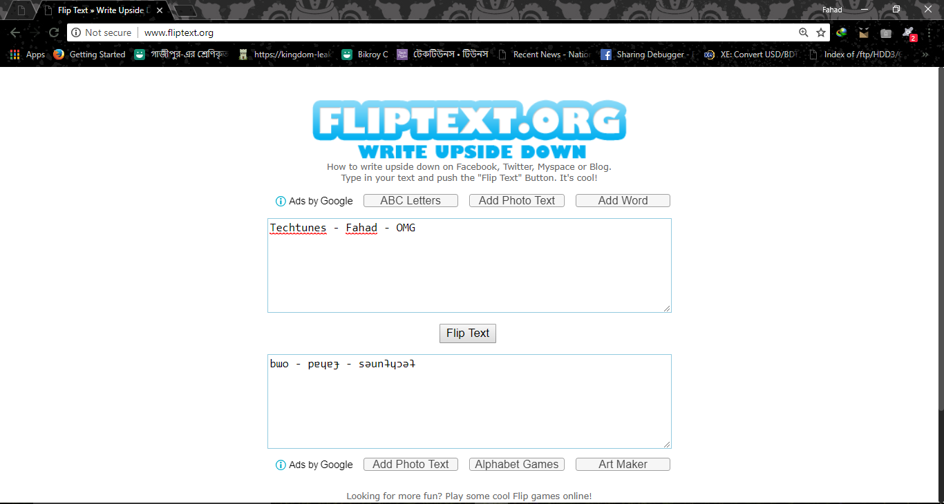 এই ওয়েবসাইটও লোকজনদেরকে বিভ্রান্ত করার উদ্দেশ্যেই নির্মাণ করা হয়েছে। এই সাইটে গেলে দুটি বক্স পাবেন আপনি। ওপরের বক্সে কিছু একটা লিখুন, তাহলে দেখবেন যে নিচের বক্সে ওই লেখাটার উল্টো করে সাজানো হয়েছে। এবার আপনার কাজ হচ্ছে নিচের বক্সের উল্টো লেখাকে কপি করে নিয়ে আপনার বন্ধুদেরকে চমকে দেওয়া! সাইটটির লিংক: http://www.fliptext.org/