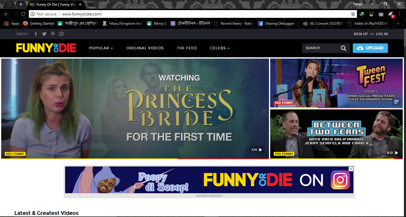 ২০০৭ সালে Will Ferrell, Adam McKay, Michael Kvamme এবং Chris Henchy মিলে এই কমেডি ভিডিও ওয়েবসাইটটি তৈরি করেন। সাইটটিতে আপনাকে মজা দেওয়ার জন্য বিভিন্ন মাত্রার মজাদার ফানি ভিডিও দেওয়া রয়েছে। টাইম পাস করার জন্য এটি আরেকটি চমৎকার “ফাউ” ওয়েবসাইট। সাইটটির লিংক: http://www.funnyordie.com/
