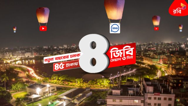 রবি নতুন ইন্টারনেট অফার। এখন রবি নতুন বছরের উপলক্ষে নিয়ে এলো ৪ জিবি ইন্টারনেট প্যাক মাত্র ৪৫ টাকায়। বছরের প্রথমে বাংলাদেশের একমাত্র শক্তিশালী 4.5 জি নেটওয়ার্কে সুপার ইন্টারনেট অফার। এই অফারটি সকল রবি কাস্টমারদের জন্য প্রযোজ্য। ডাটা প্যাকটি 3 জি, 4 জি সকল সিমে ব্যবহার করা যাবে। মাত্র ৪৫ টাকা দিয়ে ৪ জিবি ইন্টারনেট ডাটার মধ্যে (২ জিবি ইন্টারনেট রেগুলার + ২ জিবি ইন্টারনেট Youtube and IMO ব্যবহার করতে পারবে)। নতুন বছরের চমক প্যাকটি আক্টিভেশন করতে ডায়াল করুন *123*13# নাম্বার অথবা এই ডাটা প্যাকটি কিভাবে নিবেন জানতে কল করে যেনে নিন 844413 (ফ্রি কল চার্জ)। ইন্টারনেটের মেয়াদ ৩ দিন। ইন্টারনেট ব্যালেন্স জানতে ডায়াল করুন *8444*88#। বাংলাদেশের এই অফারটি রবির সুপার নেটওয়ার্কে সাথে নতুন বছর শুরু করুন।